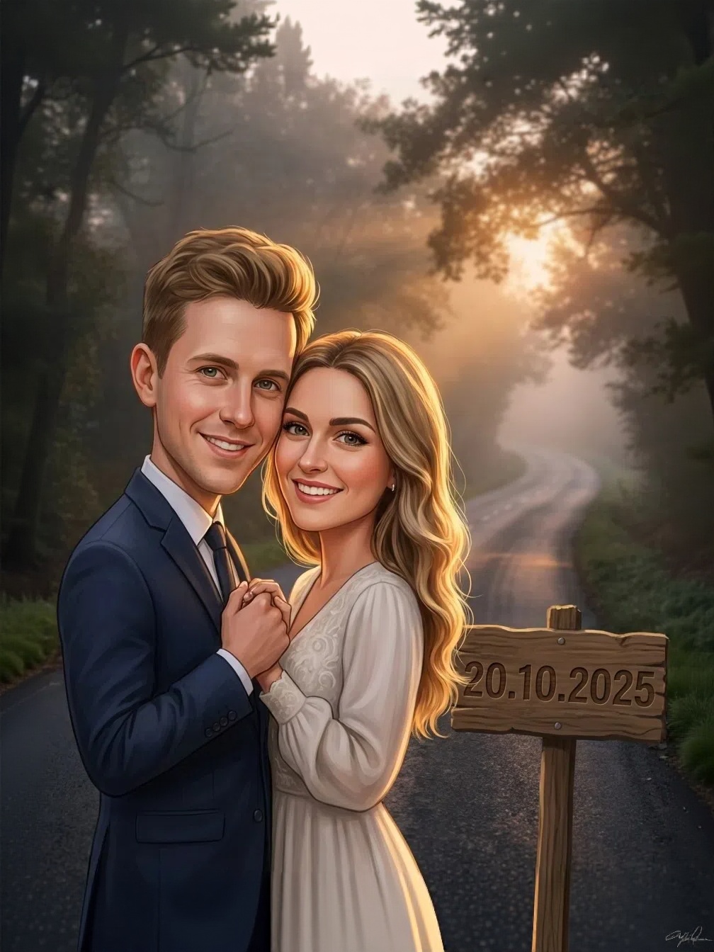 ZNAK Z DATĄ – personalizowany portret dla pary ze zdjęcia na prezent